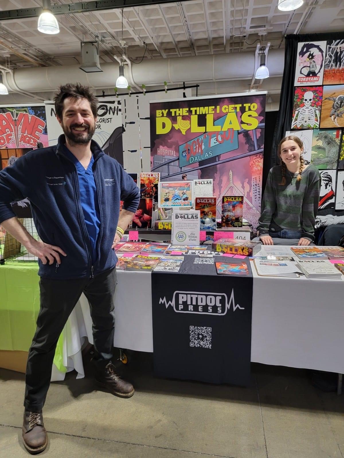 Hi I'm Colin Devonshire--husband, father, emergency doctor, writer and musician. As a board certified emergency physician for 20 years in Boston, I take care of everyone coming through the door. When I'm not in the ER I keep busy with creative projects. My comic book, By the Time I Get to Dallas, started as a writing project during a work sabbatical. Together witha team of talented artists, we've grown Dallas into a 300+ page series. I perform rock music in Boston bars with my band Twice-a-Day Ray. I document the midlife struggle in my blog at PitDocPress.com. Along the way I've been an environmental scientist and paleontology researcher; I've bred Siamese fighting fish, produced a medical school class show, thrown a craps party on my roof, and earned a blue belt in Krav Maga. I live with my wife Ethel, a psychiatrist, and our children Virginia and Ezra. Ethel is the psychiatrist, we don't have a separate psychiatrist living with us. That would be weird.